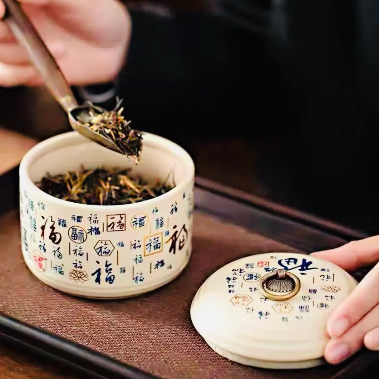 ◎密閉性の良い陶器の茶缶で、大事なお茶を入れ、取り出すのが便利。落ち着いた色合いと深みのある色が特徴です。 細工が良く、使い心地良い。