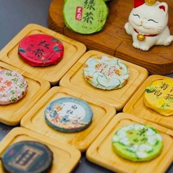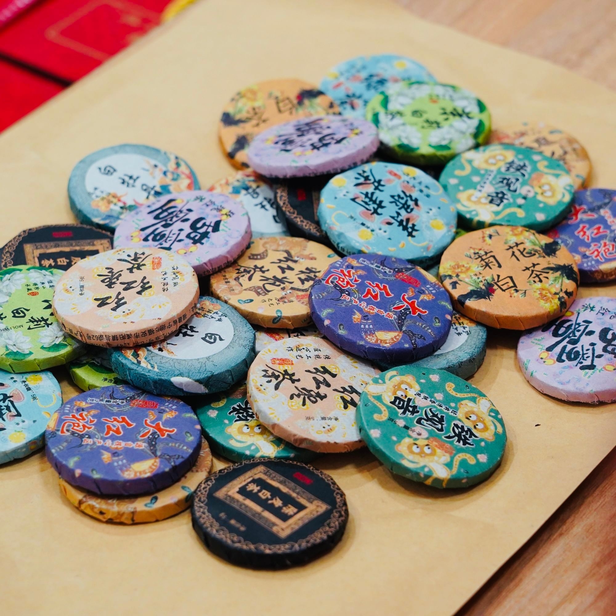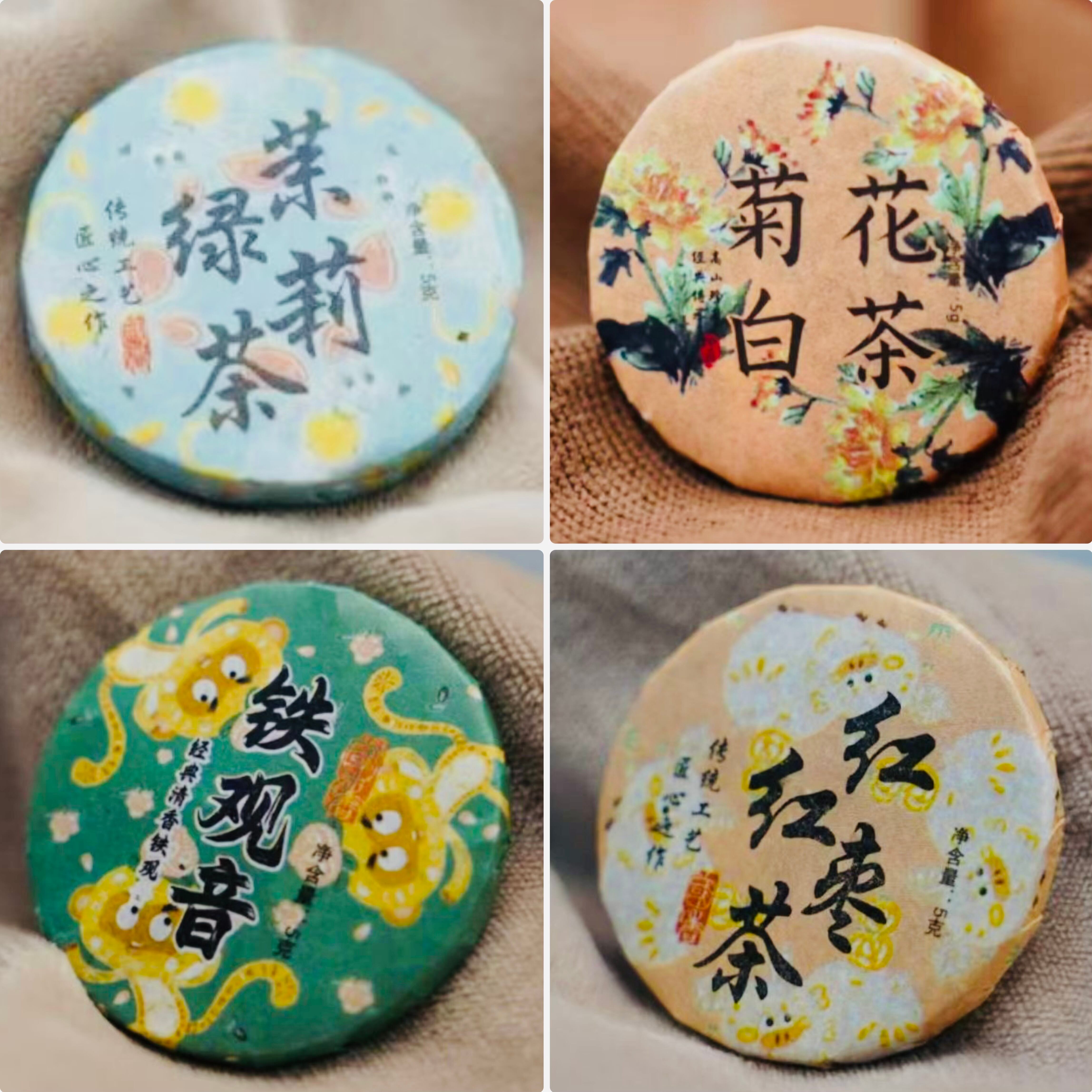 ④プーアル茶組:陳皮プーアル茶、菊花プーアル茶、桂花プーアル茶、班章プーアル茶、青柑プーアル茶、プーアル生茶、冰島甜プーアル茶など