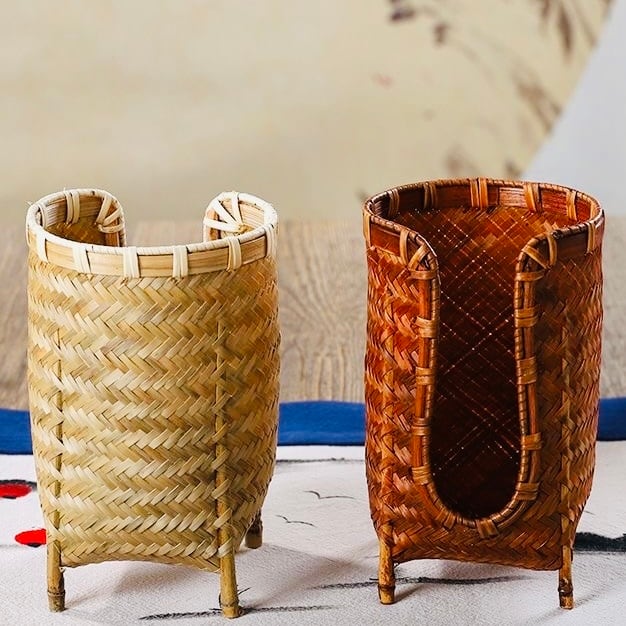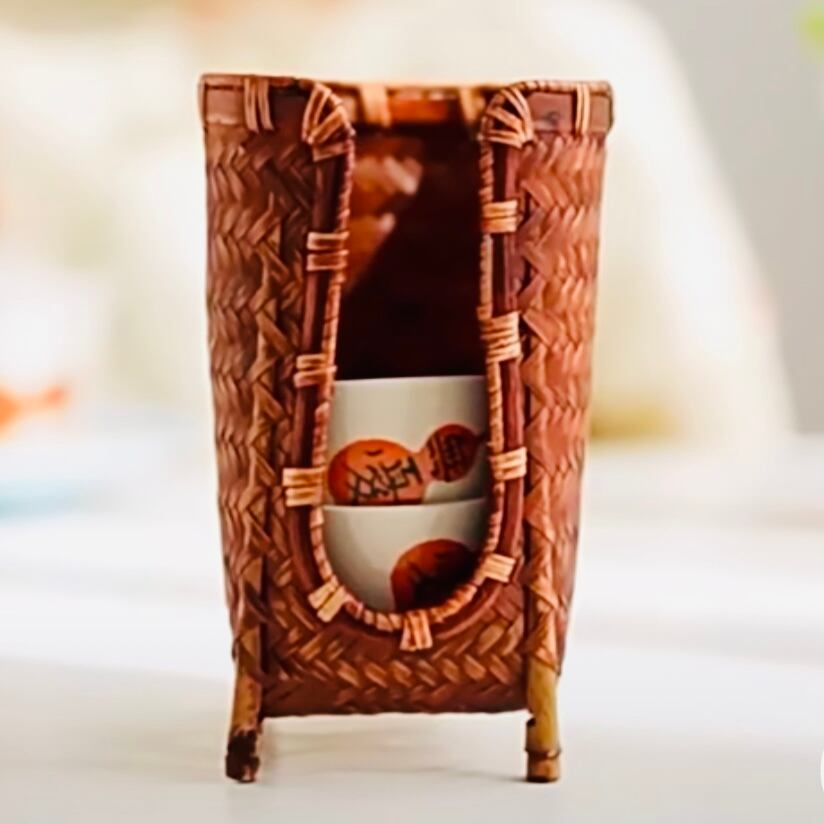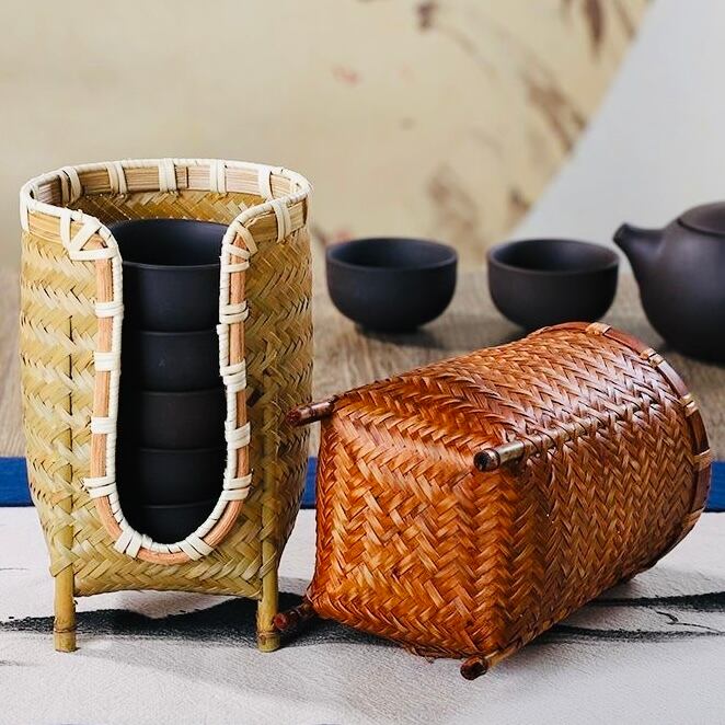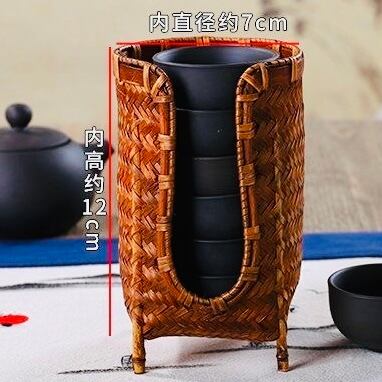 ◎手作りの竹編み収納カゴ、直径7cmまでの茶杯を収納できます。茶卓や茶道に最適です。持ち運びやすい、細工が良く、使い心地良い。