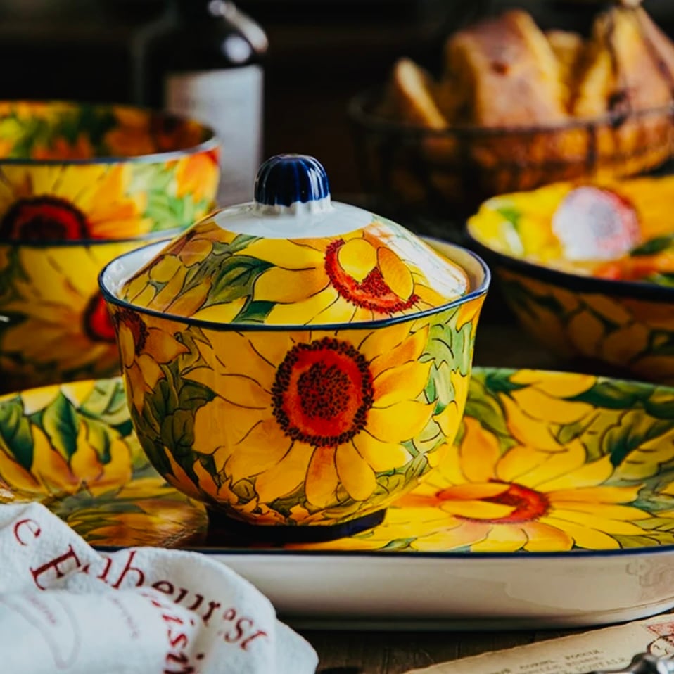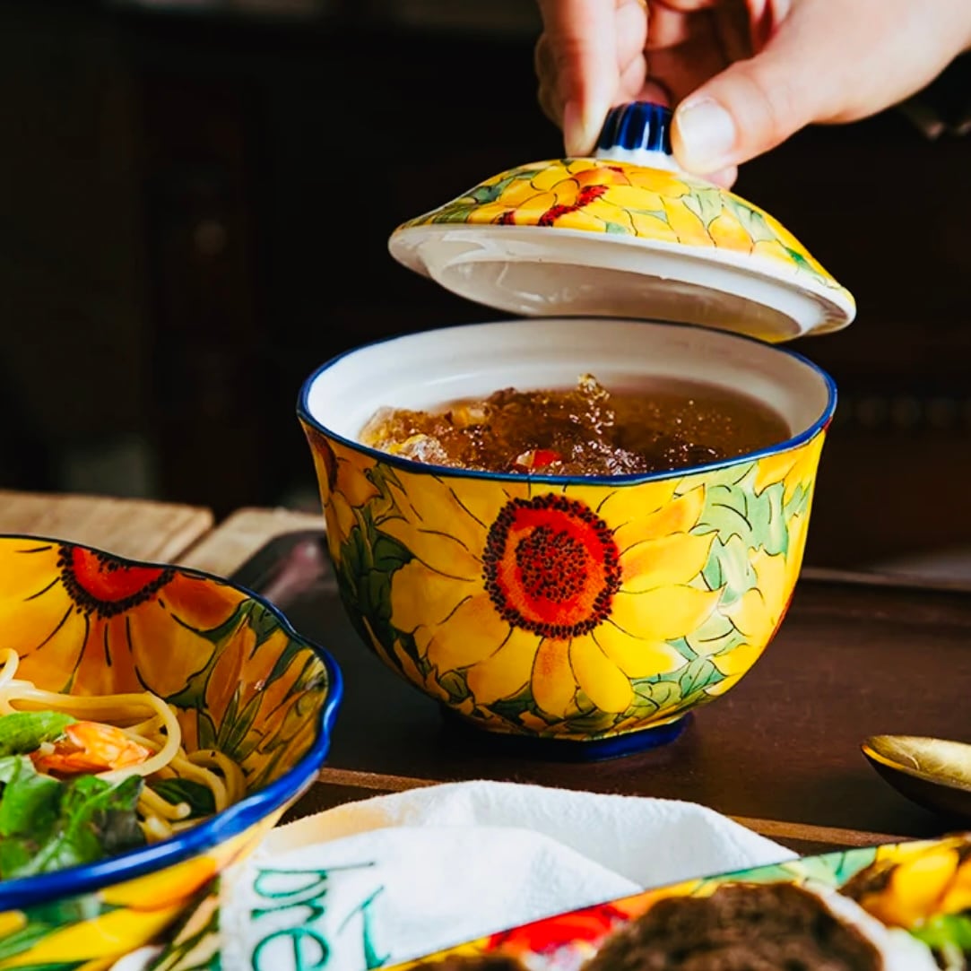 ◎使いやすい大きさのボウル、ひまわりの花柄が美しい、ナチュラルなので、スープ、デザート、サラダはもちろん、煮物などにもマッチする汎用性の高さが魅力です。
