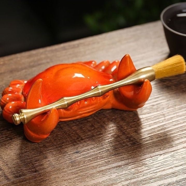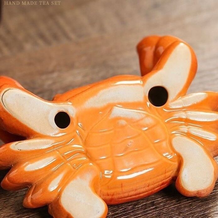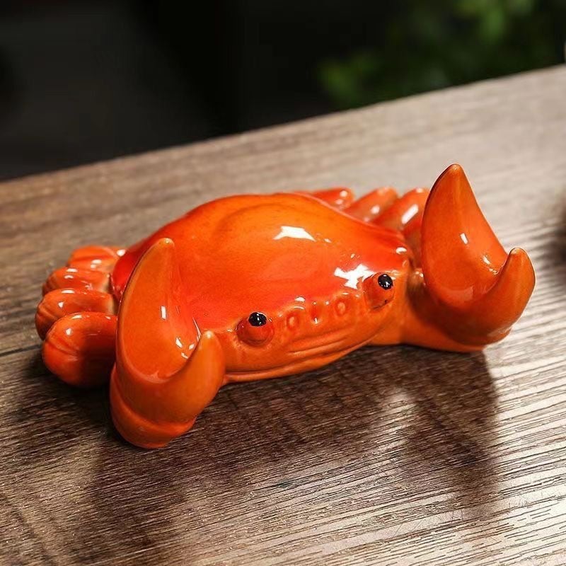 ◎オレンジ色のカニ置物、縁起の良いものとして、金運上昇、幸運続々という意味があります。携帯や茶道具のスタンドとしても使われます。