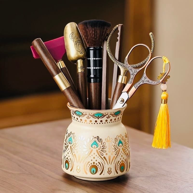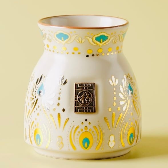 ◎陶磁器茶器の一種、縁起の良い模様を施され、福や幸運を招くという意味があります。茶盤横に置かれ、茶道具収納やお茶淹れる時に便利。