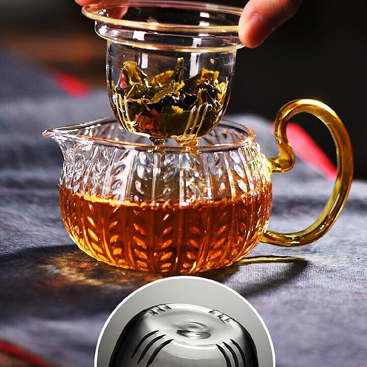 ◎耐熱グラスで厚く加工し、しっかりしてます。どんなお茶を淹れても適します。細工が大変良く、一人や多人数の時使うのがぴったり!