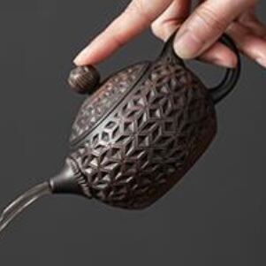 ◎紫陶の製品は、「水を入れても臭くならず、花を生けても根が腐らず、茶を入れても味は馥郁として、宵越しの肴も味が変わらない」と言われる。建水の紫陶は、中国の「四大名陶」の一つです。満彫製法で細工と使用感が大変素晴らしい。
