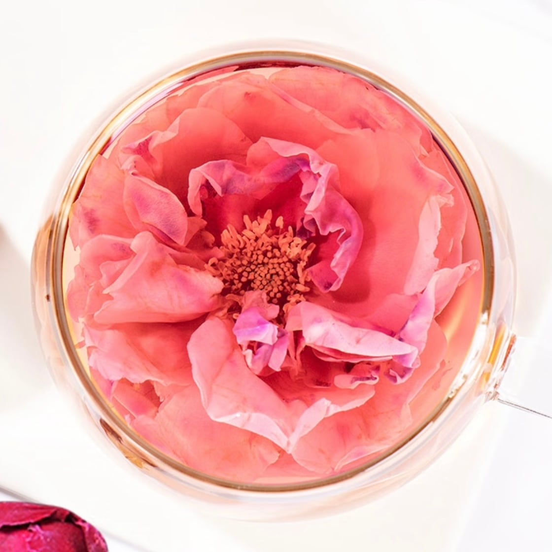 ○1粒のお花をカップに入れ、80°ぐらいの熱湯を注いで、2分ぐらい蒸らして、お飲み頂けます。