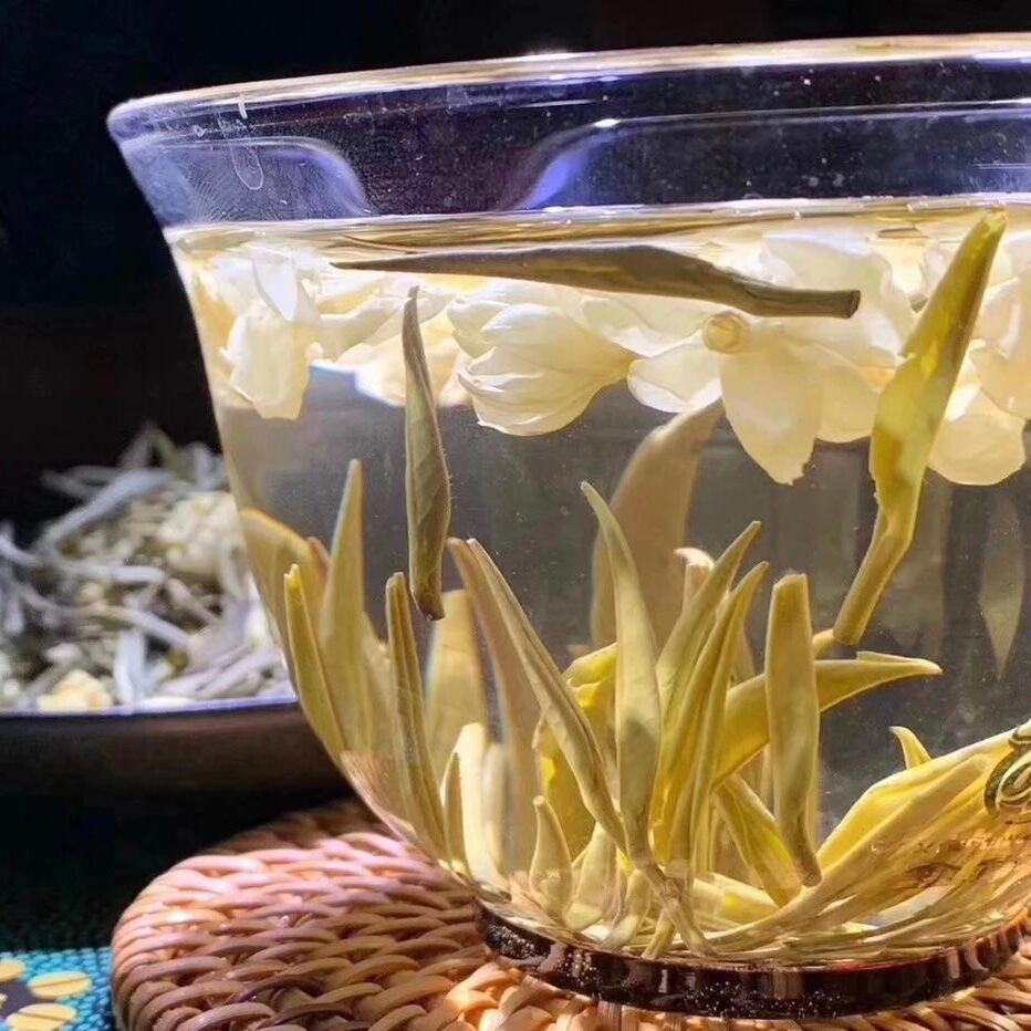◎銀針茶は、茶樹の芽を原料とし、作られた銘柄です、白い産毛をびっしり覆って、針のような形で、銀針と呼ばれました。雲南銀針茶をベースにジャスミンの香りを燻製させ、両方の香りを相乗し、香りが良くて、独特の風味を持っています。