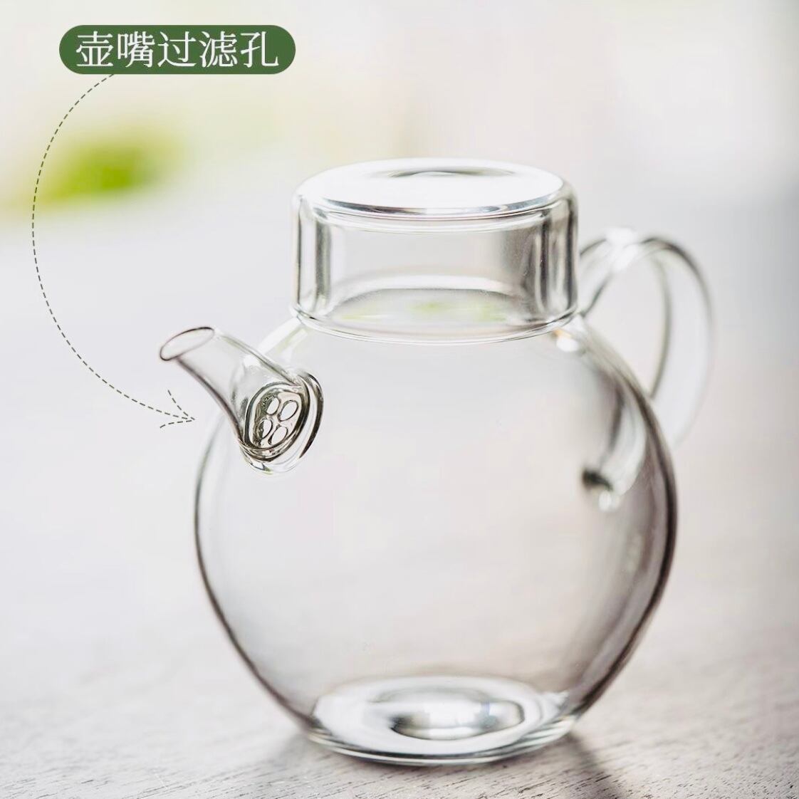 ◎透明耐熱急須の一種、茶湯の出口に茶漉し付きタイプで、お茶を淹れるのが便利です。蓋は湯呑みとしても使えます。